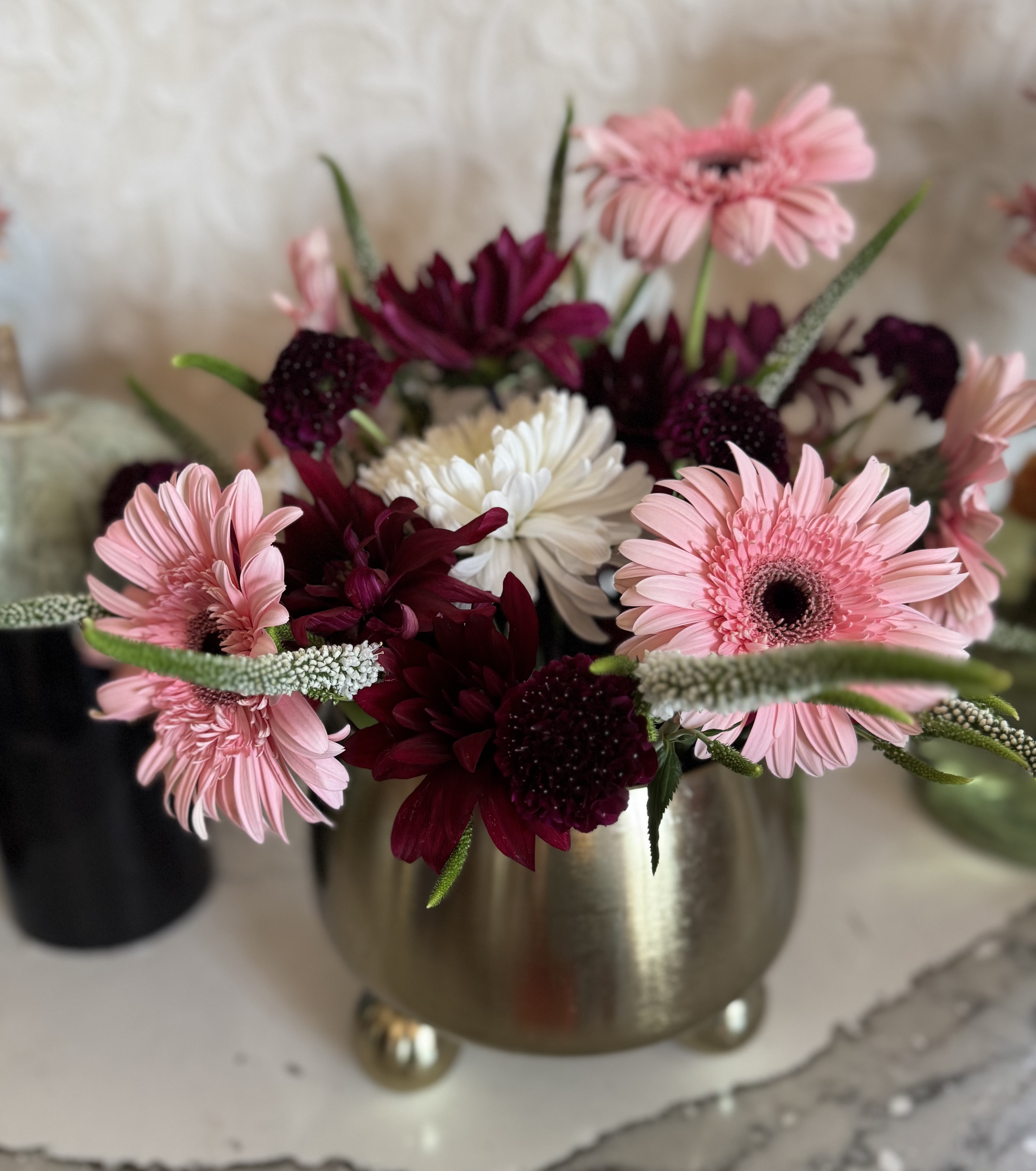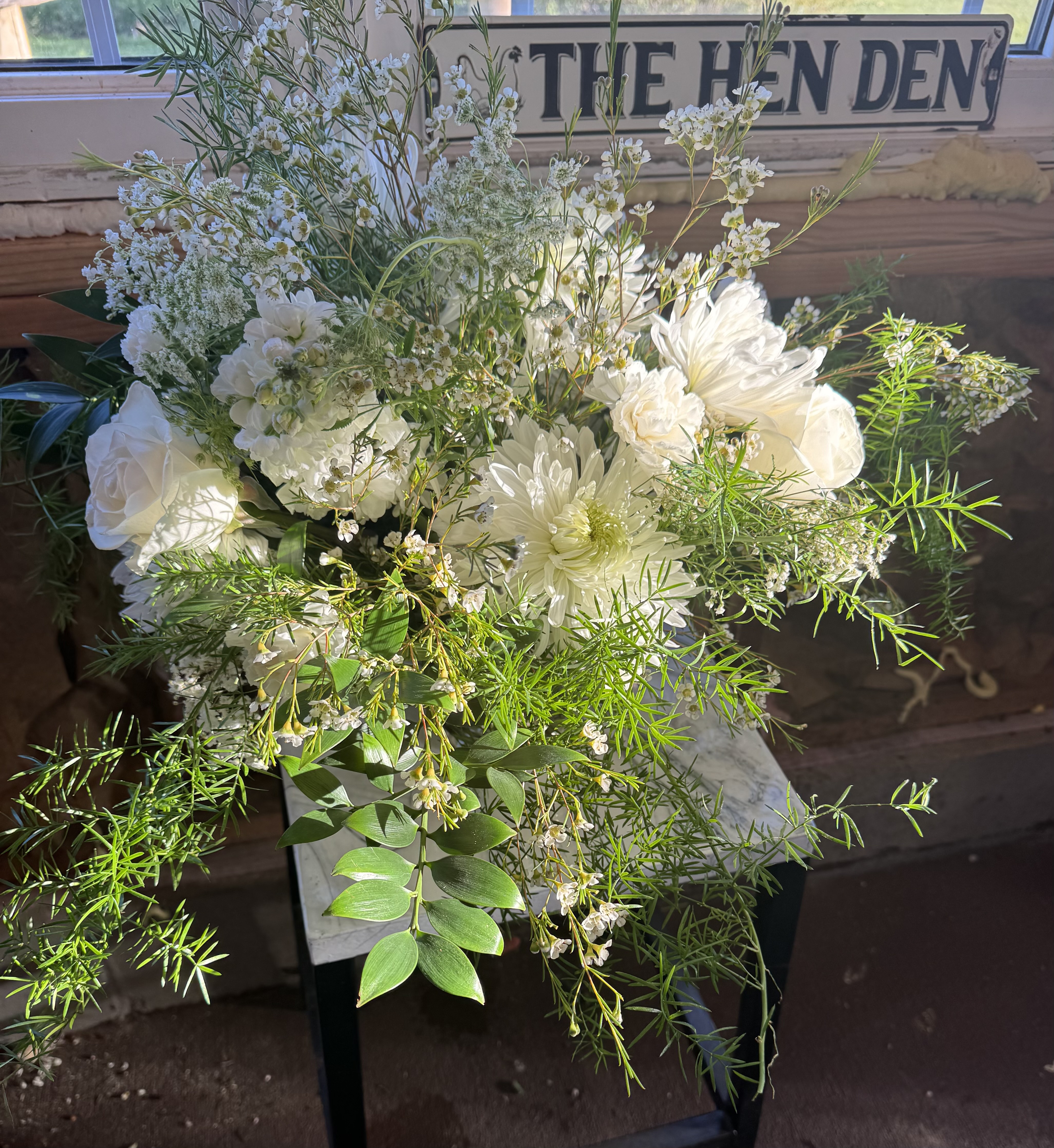 We start by learning about your vision, colors, occasion, and any preferences you have. From there, we design a one-of-a-kind arrangement using seasonal flowers and thoughtfully chosen elements.